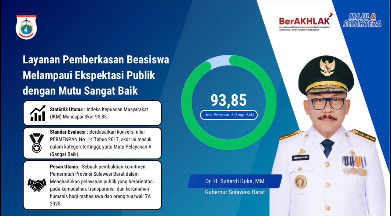 Layanan Pemberkasan Beasiswa Pemprov Sulbar Tembus IKM 93,85, Bukti Nyata Pelayanan Publik Bermutu Tinggi