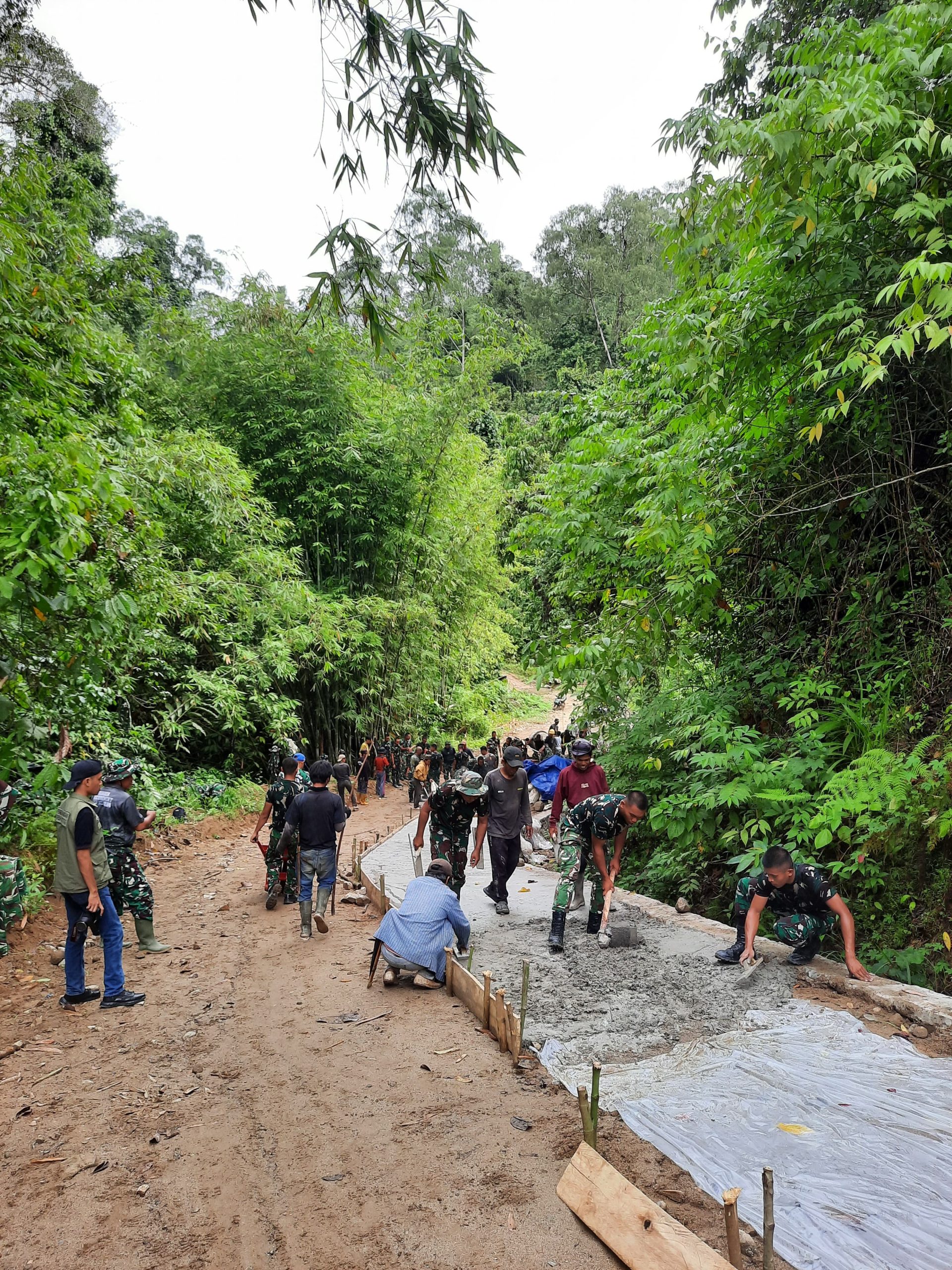 Satgas TMMD Ke 127 Kodim 1402 Polewali Mandar bersama warga setempat, terus percepat pengerjaan rabat beton pada ruas jalan poros Bulo menuju Lenggo, Kabupaten Polewali Mandar (Foto Dok. Penerangan Kodim 1402 Polewali Mandar)