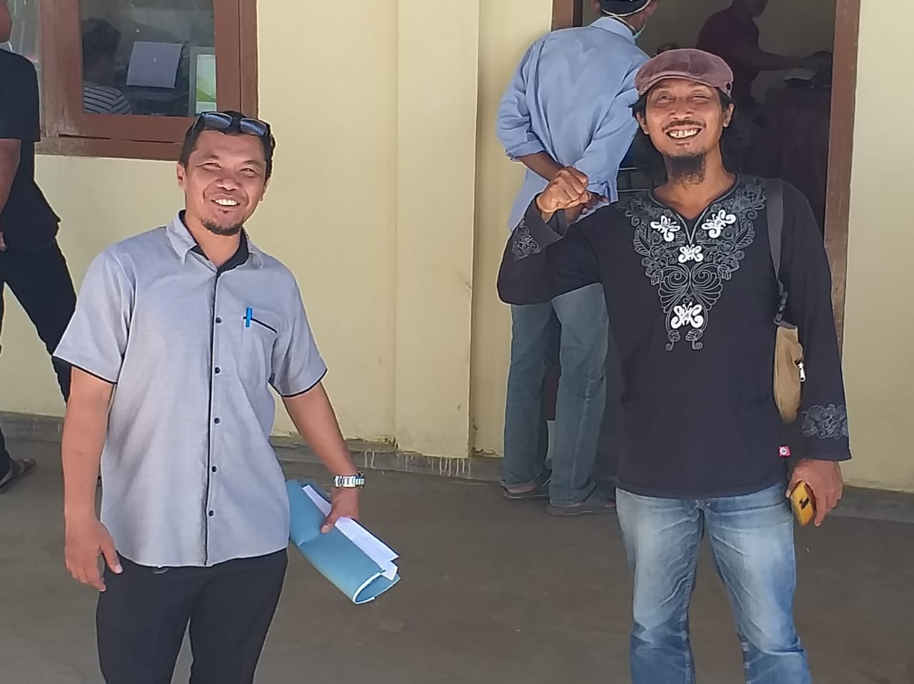 Kepala Desa Sumberjo Suwardi S. dan Kepala Dusun Pendukuhan Ateck dilokasi pelayanan JEBOL Disdukcapil PolMan.
