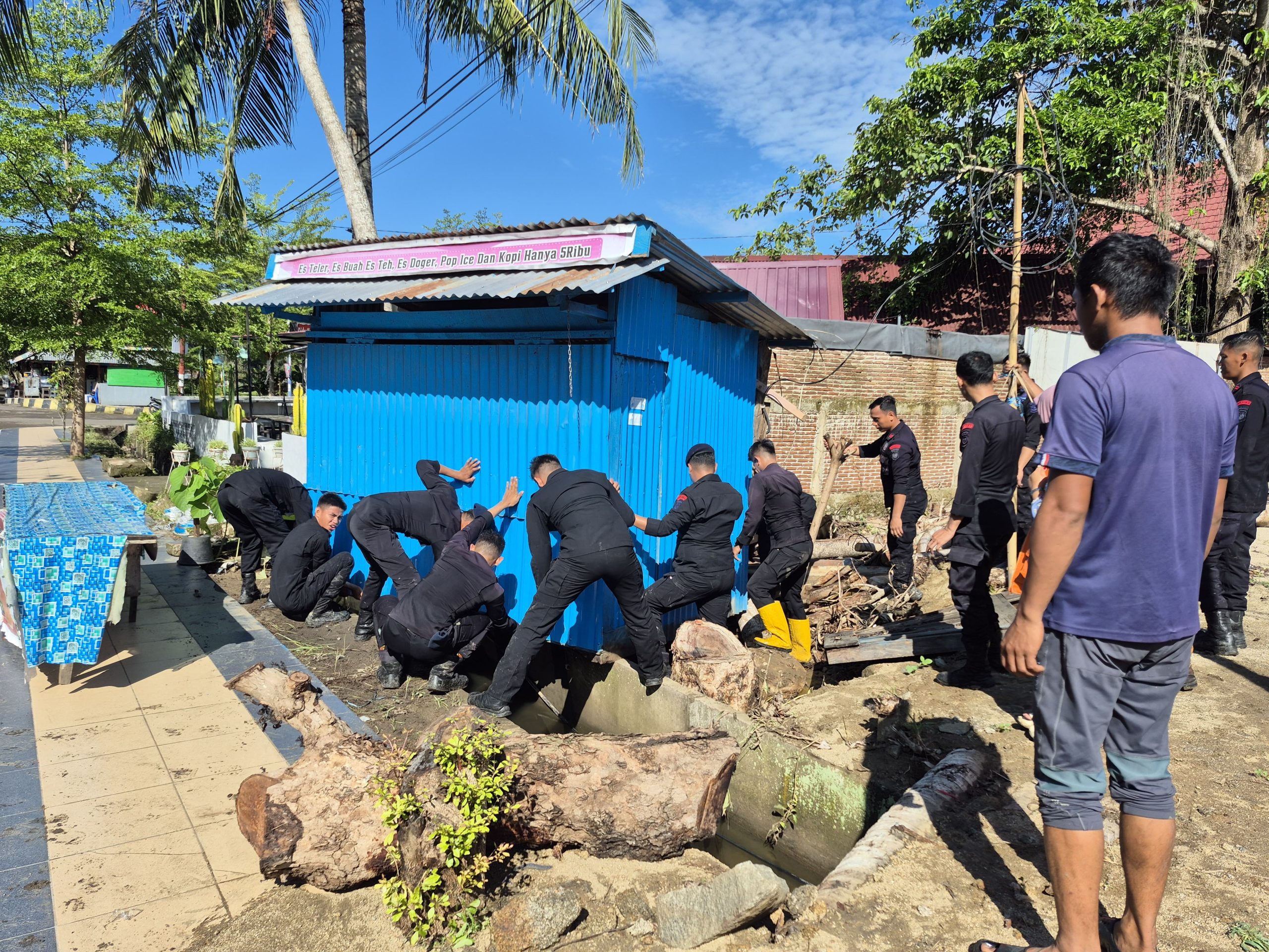 “Kami langsung bergerak setelah menerima laporan adanya wilayah yang terdampak banjir. Fokus kami membantu warga membersihkan rumah, fasilitas umum, serta memastikan lingkungan kembali bersih dan aman,” ujar Ipda Ilham.