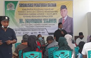 H. Nurdin Tahir menjelaskan sosialisasi Perda tentang pemilihan kepala desa dirinnya sudah 2 kali melaksanakan, hal ini penting karena tahun 2021 kabupaten Polewali Mandar akan melaksanakan Pilkades (Pemilihan Kepala Desa) serentak di 67 Desa dan saat ini sudah memasuki tahap pendaftaran. Masyarakat Polewali Mandar harus paham akan regulasi pelaksanaan Pilkades agar bisa ikut serta mengawasi pelaksanaannya.