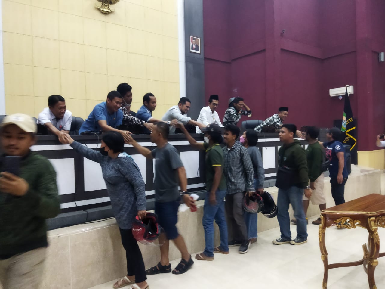 Kegiatan aksi ini berakhir dengan aman dan damai, masyarakat petani Sawit sebelum meningalkan ruang aspirasi sebahagian bersalaman dengan anggota dewan. (Sudi).