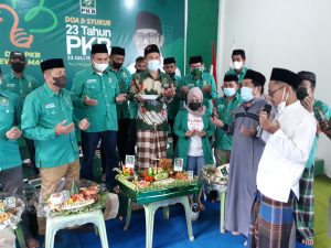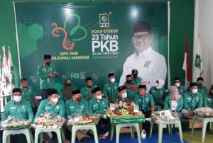 Polewali.WartaAmperak–Acara Do’a dan Syukur Harlah ke-23 PKB (Hari Lahir Partai Kebangkitan Bangsa ke-23) mengusung tema “Aksi Melayani Indonesia” dilaksanakan serentak secara Virtual di seluruh Indonesia. Pengurus Cabang Partai PKB kabupaten Polewali Mandar mengikuti acara tersebut di Taman Kebangsaan kecamatan Matakali kabupaten Polewali Mandar, Diawali dengan khataman Al Qur’an dilanjutkan dengan pemotongan tumpeng dan berdo’a bersama. Tampak hadir di Taman Kebangsaan ketua PKB Polewali Mandar H. Amiruddin, SH., yang juga Wakil Ketua I DPRD PolMan Ketua Gerbang Tani PolMan, Ketua PC NU PolMan Muh. Arsyad, M.Ag,. Ketua Garda Nusantara PolMan, ketua Perempuan Bangsa PolMan, Ketua GEMASABA, ketua DPAC sekabupaten Polewali Mandar dan Anggota Legislatif Fraksi PKB DPRD PolMan. Jum’at. 23/7/2021.