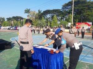 Adapun personel Polres PolMan yang melaksanakan pelantikan Kabag Log dan Serah Terima Jabatan dilingkungan Polres Polman berikut :