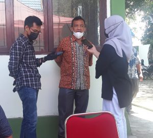 Kepala Desa Bakka Bakka Darwis, SE., saat di wawancara. (tengah)