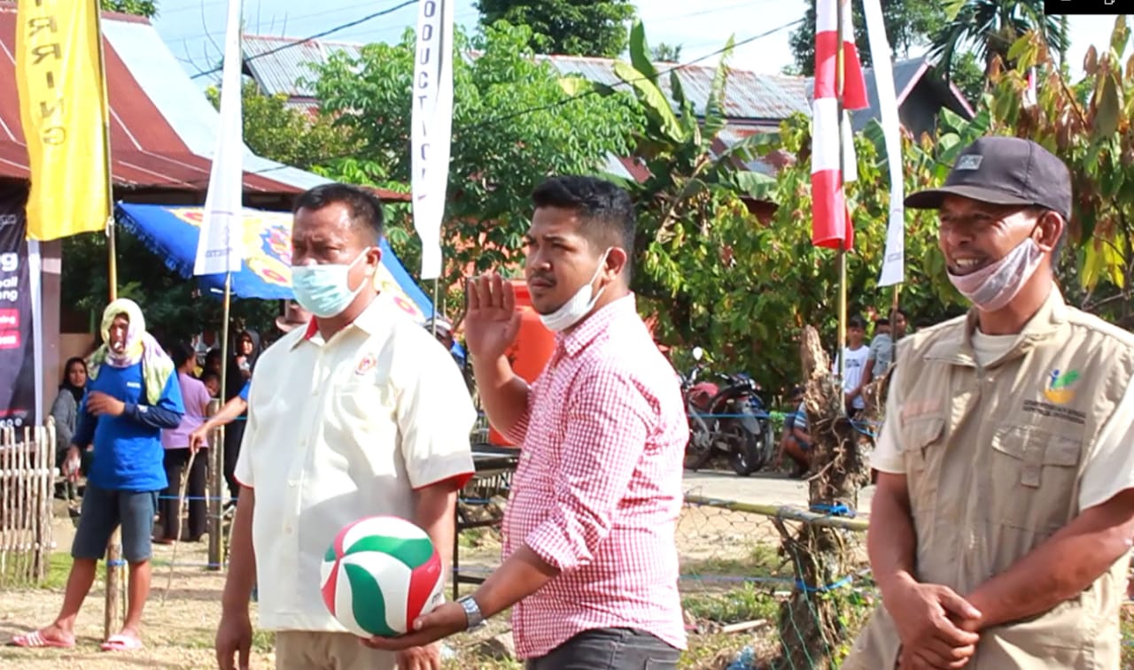 Basir selaku Owner Pare Production (tengah) saat membuka Turnamen Bola Volly Pare Production Cup.