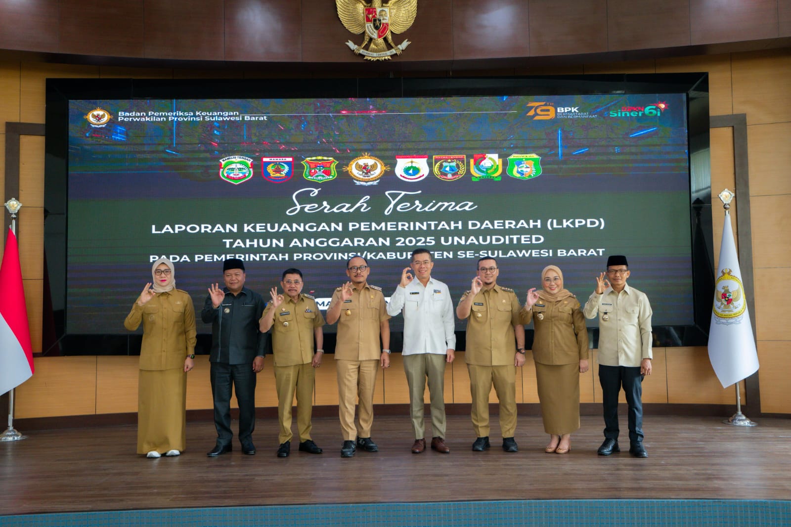 WARTAAMPERAK.COM_MAMUJU_)))))))))))))))) Pemerintah provinsi (Pemprov) Sulawesi Barat (Sulbar), menyerahkan Laporan Keuangan Pemerintah Daerah (LKPD) unaudited Tahun Anggaran (TA) 2025 kepada Perwakilan Badan Pemeriksa Keuangan (BPK) Sulbar.
