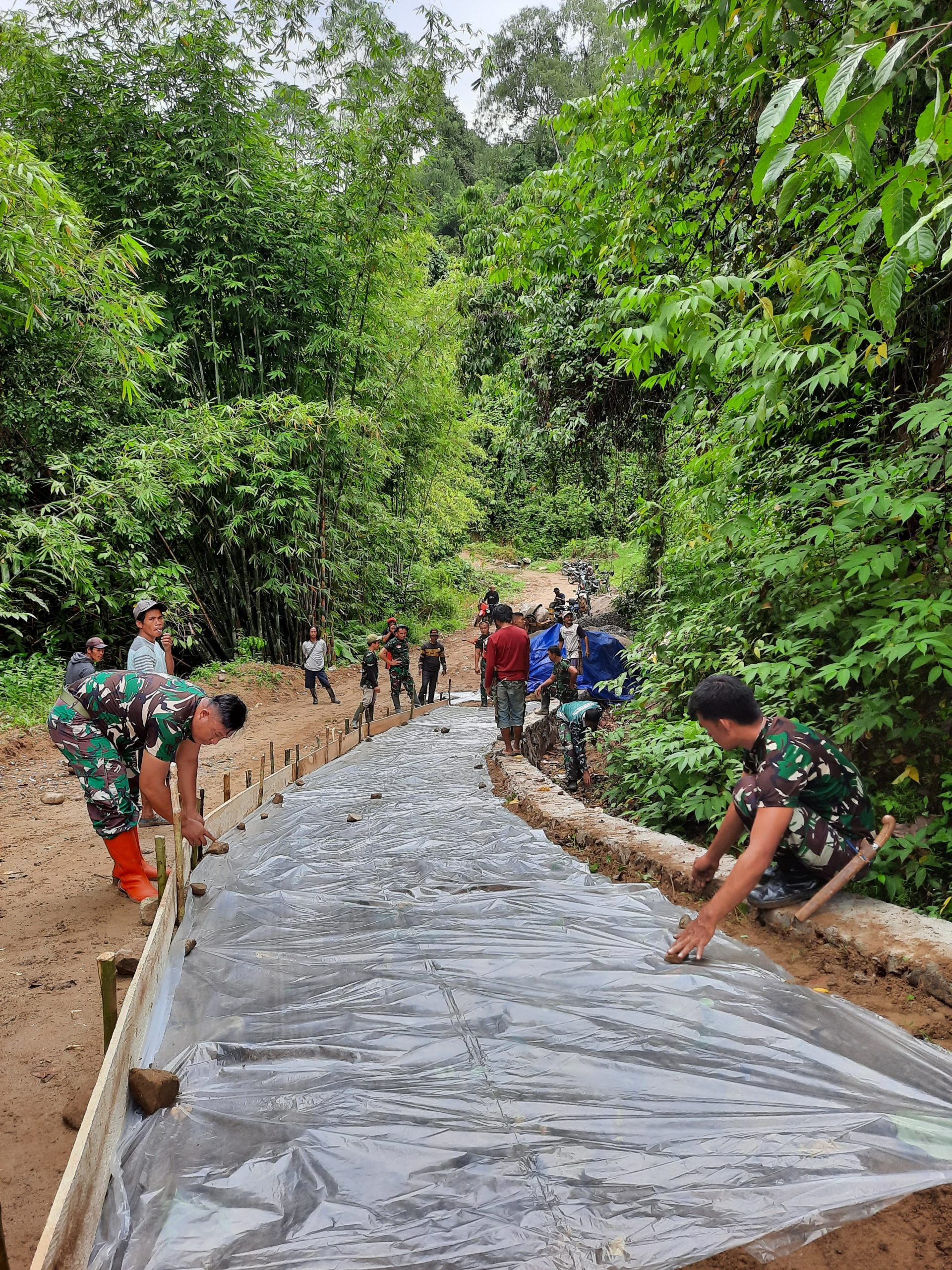 Menurutnya, rabat beton sepanjang 500 meter dikerjakan secara bertahap dengan memulai dari ujung jalur untuk memudahkan pelansiran material ke titik sasaran. Medan yang cukup menantang menjadi perhatian khusus dalam pengaturan teknis pekerjaan di lapangan.